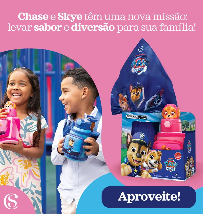 Somente Hoje 50%Ovo de Páscoa Patrulha Canina Garrafa Skye 170g